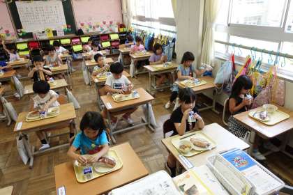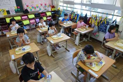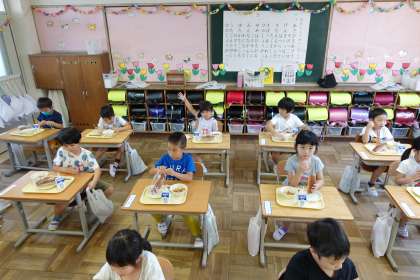 給食の様子です【1年1組】