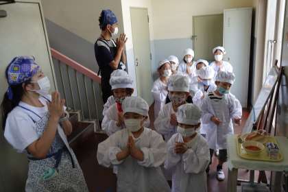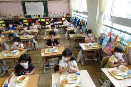給食の様子です【1年1組】