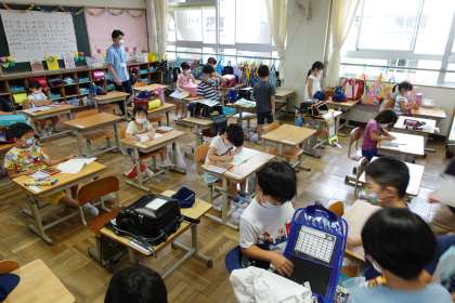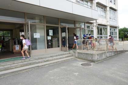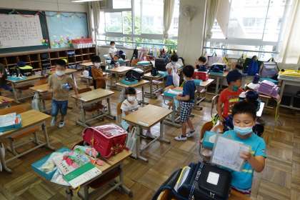 写真は朝の準備をする1年生です。教室へ行くと、自分たちからしっかりあいさつをしてくれます。