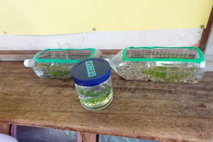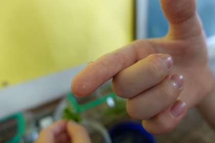 こちらは5年3組のメダカです。卵を産んでいます。見えるでしょうか・・?