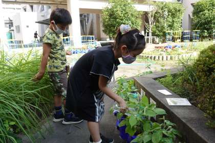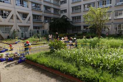 今日も中庭がにぎやかです。