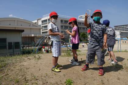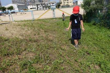 1年2組の様子です。生活科の授業で、今日は昆虫の観察です。