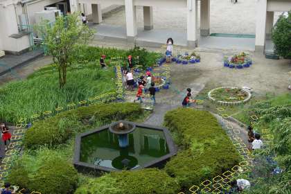 今日も中庭がにぎやかです。