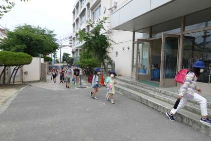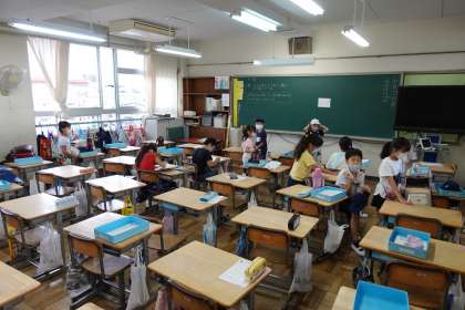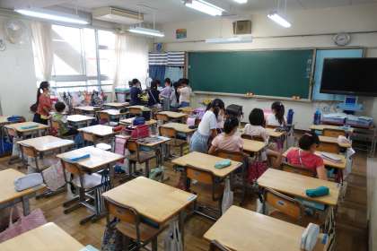 写真は朝の準備をする3年生です。1年生は更衣中でした。