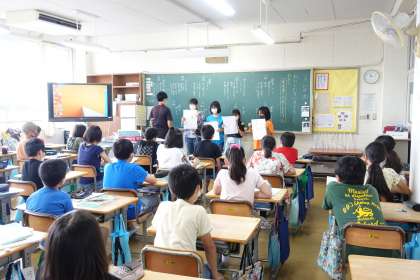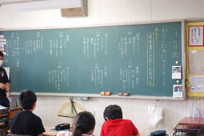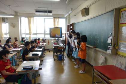 6年3組の授業です。自分たちでまとめたものを発表しています。