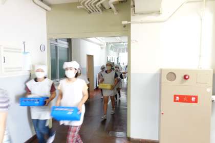 今日の献立は、コッペパン、シーフードスープスパ、たなばたぜりー、牛乳です。