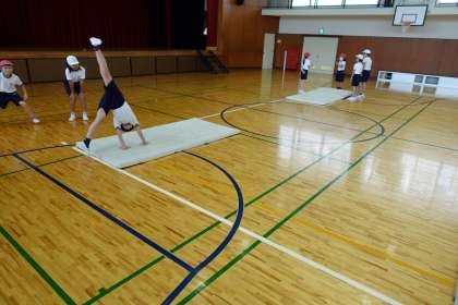 マット運動の授業です。