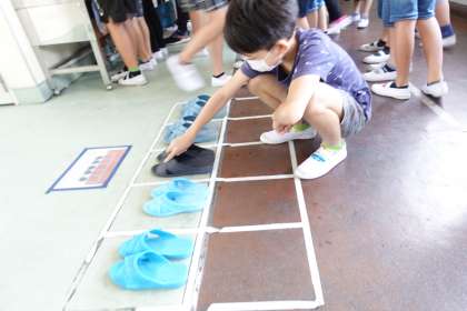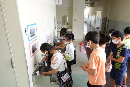 チャイムが鳴ると、しっかり手洗いをして授業の準備をします。