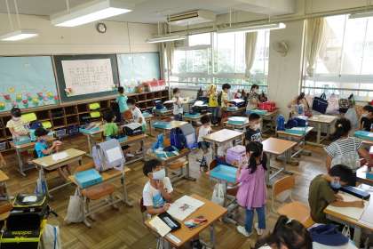 写真は朝の1年生です。