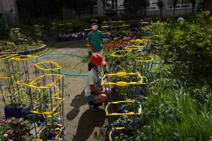にぎやかな中庭です。