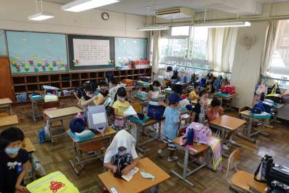 とても暑い朝です。この後も気温が上がるため、一日外で遊べなさそうです。