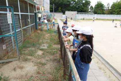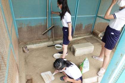 今日も飼育委員さんが頑張ってくれています。今日は、ふわりの見学者が増えました。