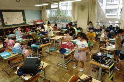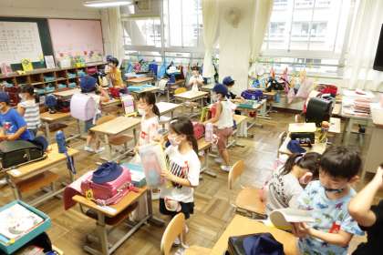 朝の準備中(1年生)