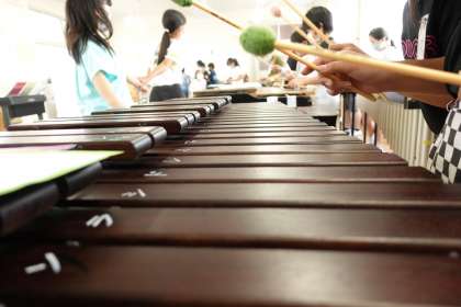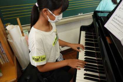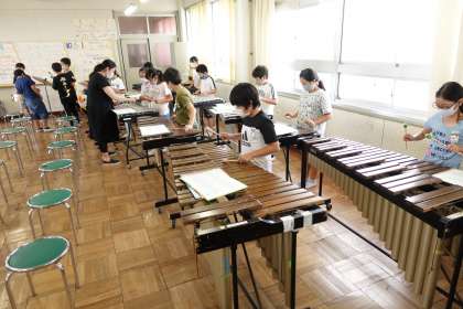 音楽室では5年生が合奏の自主練習をしていました。音楽好きな人が多くてとてもうれしいです。
