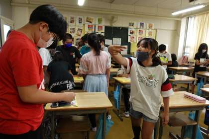 休み時間中、ずっと「あっち向いてホイ」をしている6年生を見かけました。