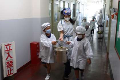 今日の献立は、オーブランパン、ポテトのトマトソース煮、野菜ジュース、牛乳です。