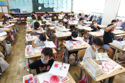 図工の授業です。集中して頑張っています。