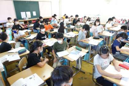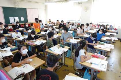 道徳の授業です。ペアで意見交流をし、考えを深めあってから発表します。