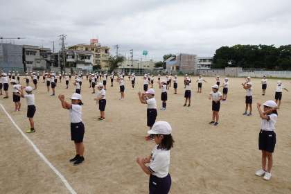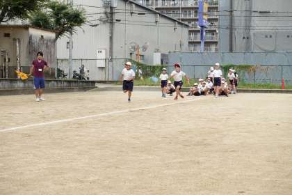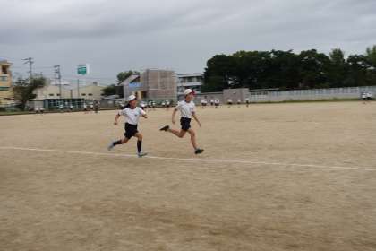 1時間目の合同体育です。今日も50メートル走のタイムを計りました。