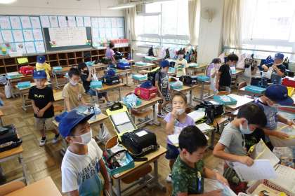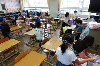 朝の準備中(1年生)