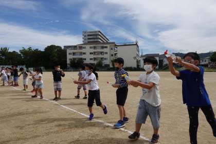 昨日から、「校長先生、明日は水あそびがあって、とても楽しみです。」と何人も教えてくれました。準備が大変だったでしょうが、担任の先生方に感謝です。