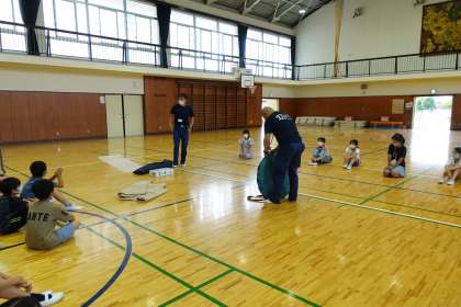 中村危機管理監より色々お話を聞いた後、実際に避難所で使用する備品を見せていただきました。