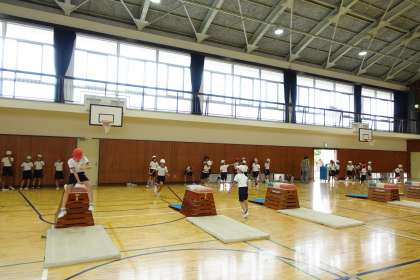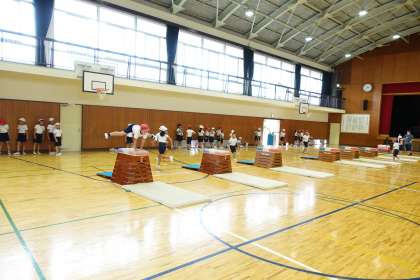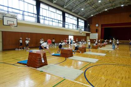 3年2組です。跳び箱の授業でした。
