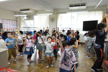 1年1組です。クラスレクです。みんな本当に楽しそうです。