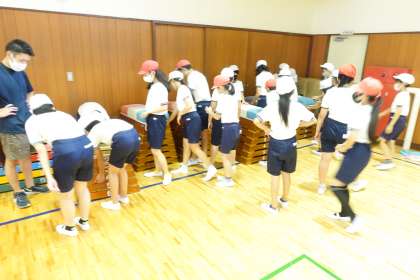 授業の後、体育館内の跳び箱やマットをすべて倉庫に移動してくれました。ありがとう!