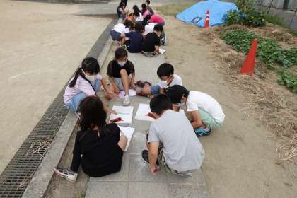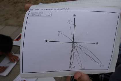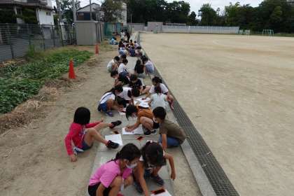 3年1組です。太陽と影の学習ですが、残念ながら今日は太陽が見えません。