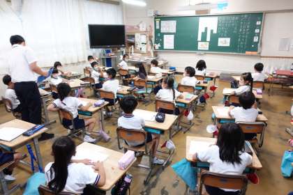 2年2組の様子です。授業を行っているのは教育実習生の今井さんです。