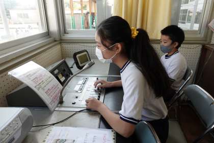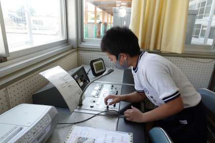 今日の担当放送委員さんです。今日もすてきなアナウンスです。