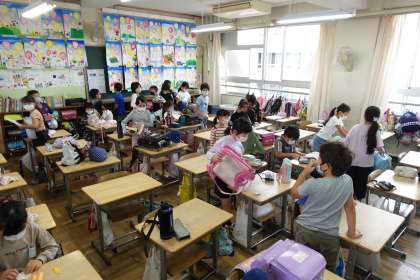 写真は朝の準備をする3年生です。1年と2年は更衣中だったので撮影できませんでした。
