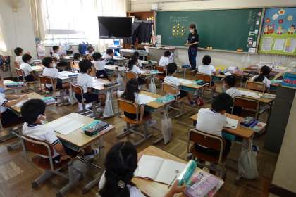1年2組は算数です。