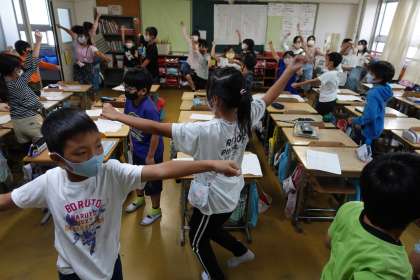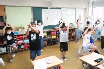 4年3組は、ダンスの動きをお互い確認しあっていました。