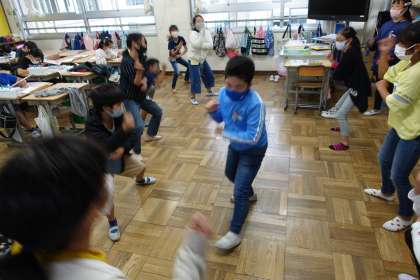 5年生の様子です。踊っているのはソーランです。みんなソーランが大好きです。
