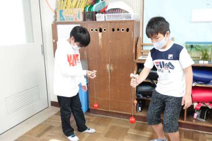 いつものけん玉名人も練習中です。