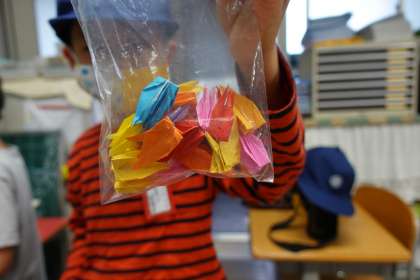 6年生からお願いされている折り鶴を持ってきてくれました。ありがとう。