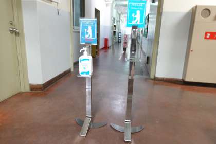 (株)昭和電機様より、足踏み式アルコールスタンドをご寄贈いただきました。ありがとうございました。大切に使わせていただきます。
