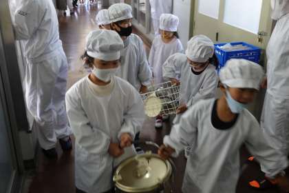 給食係さん、ご苦労様(1年2組)