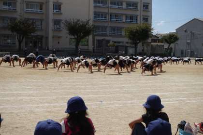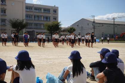 今度は2年生が6年生の演技を見させてもらいました。口々に「すごい」、「かっこいい」と感想を言っていました。