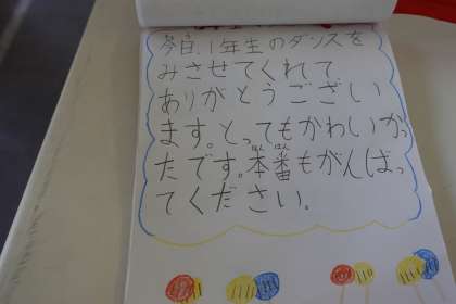 4年生の皆さんが、初めての運動会を迎える1年生に手紙を書いてくれました。心温まりますね。