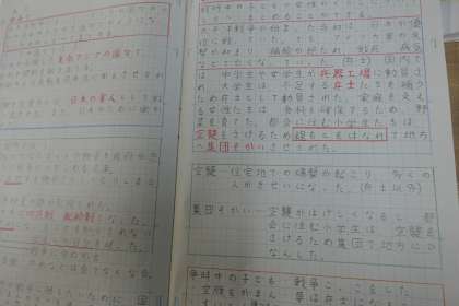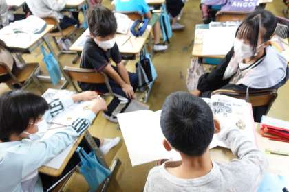 社会の授業です。グループで意見交流している場面を撮影しました。