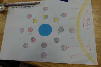 理科の授業です。月の満ち欠けについて学習しています。