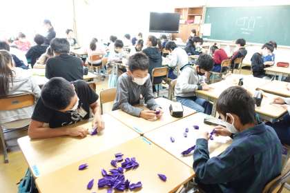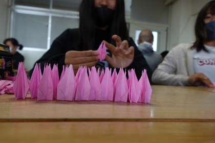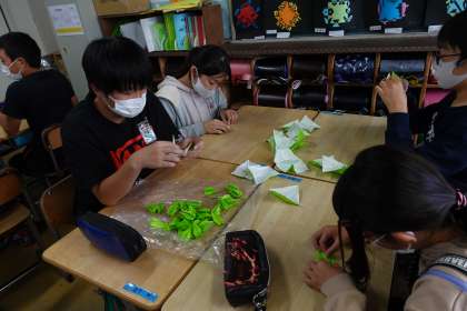 平和への祈りを込めて(6年生折り鶴作成 その2)