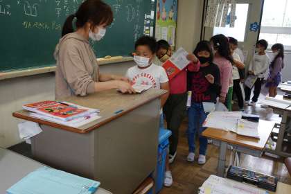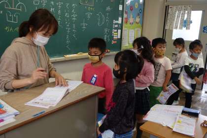 1年2組の様子です。「字」と「山」という漢字を学習していました。