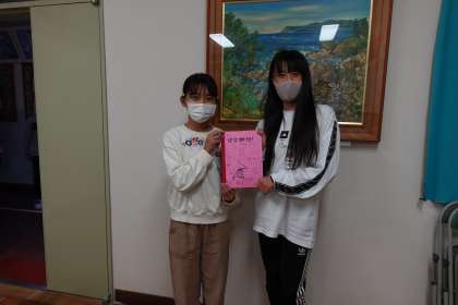 実行委員会の二人が、修学旅行のしおりを校長室に持ってきてくれました。ありがとう。