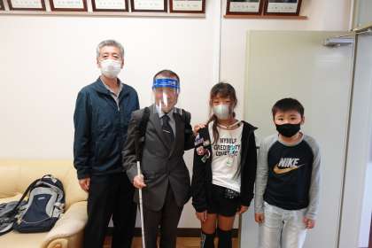 サポートをしてくれる児童が、雑賀さんを迎えに校長室へ来てくれました。3階の多目的室までご案内します。