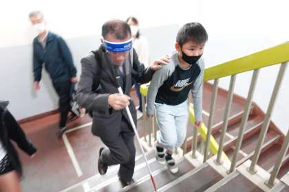 雑賀さんは中学時代に右目、高校時代に左目を失明され、その後日本ライトハウスにて訓練を行い、現在は専門学校や高等学校等で福祉分野の特別講師として活躍されています。