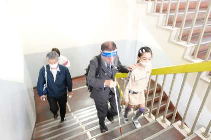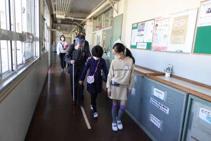 金曜日に引き続き、今日も雑賀さんにお越しいただき、視覚障がい理解学習を行いました。雑賀さん、ありがとうございます。